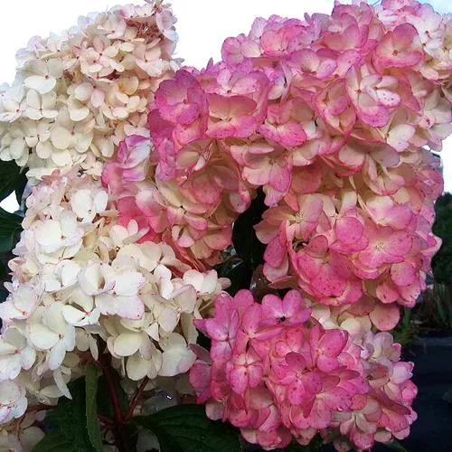Соцветие этой гортензии относится к типу метельчатого соцветия. Форма соцветия узкоконическая, размеры достигают около 25 см в диаметре и 25-35 см в длине. Цветки начинают белого цвета, но к осени они слегка розовеют. В составе соцветия присутствуют как стерильные, так и фертильные цветки с равномерным расположением по кисти. Плотность соцветия увеличивается по мере развития и становится более компактной. Диаметр цветков составляет до 5 см, а количество лепестков - 4. Цветоножки длинные. Аромат гортензии Пинк Леди метельчатой является достаточно сильным и нежным одновременно.