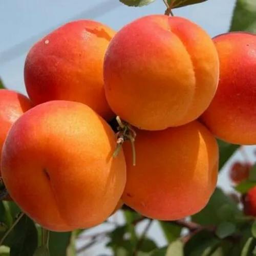 - Округлой, немного сплюснутой формы, оранжевого, с частичным тёмно-красным покровом, цвета. Мякоть приятная и сочная, оранжевого цвета. Косточка легко извлекаемая;